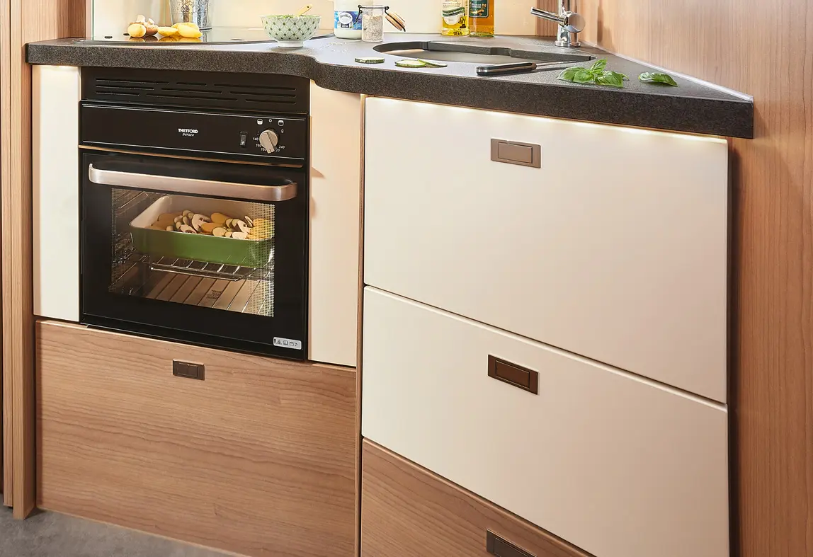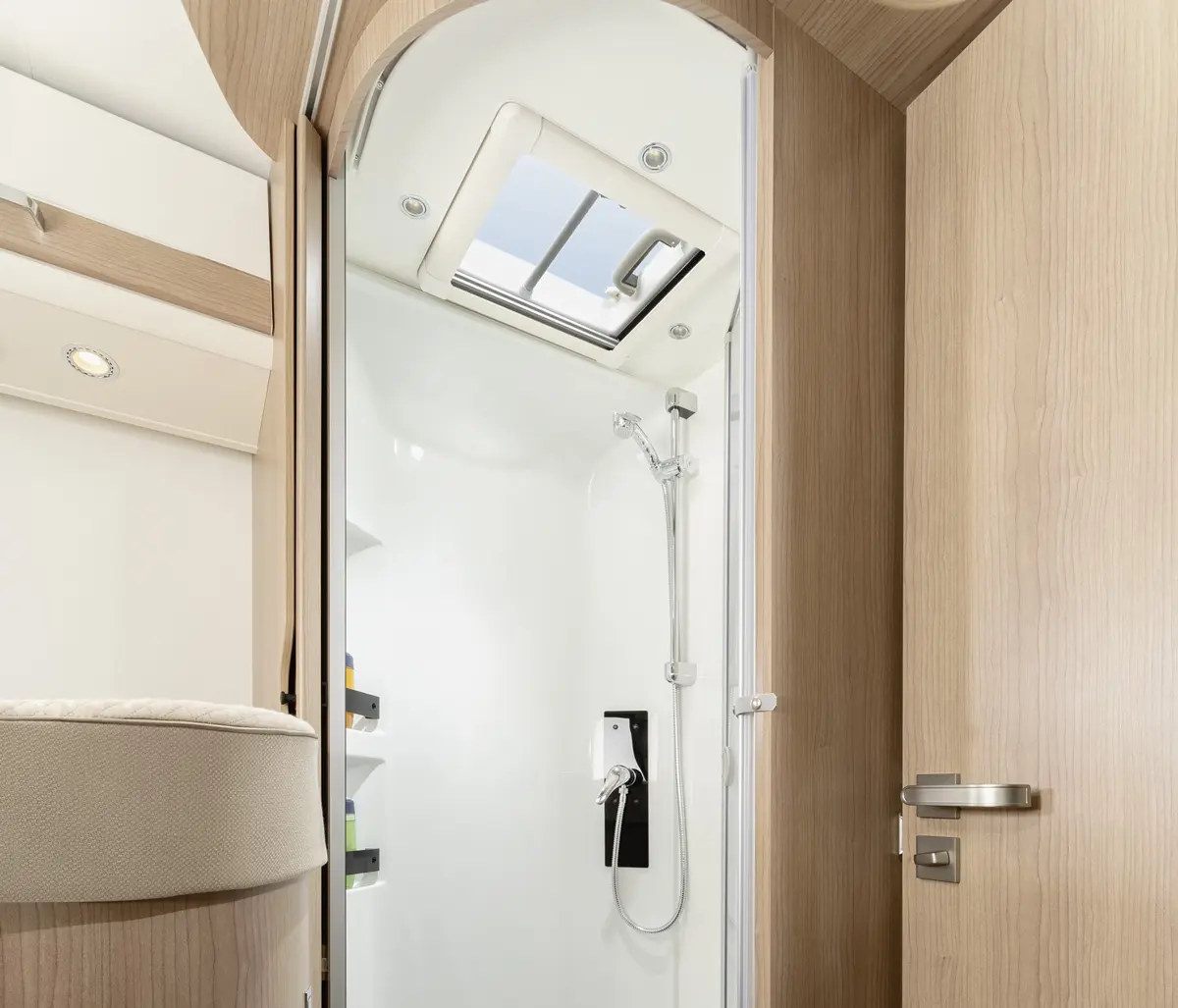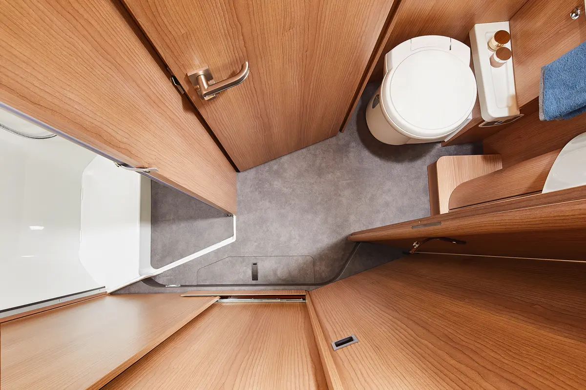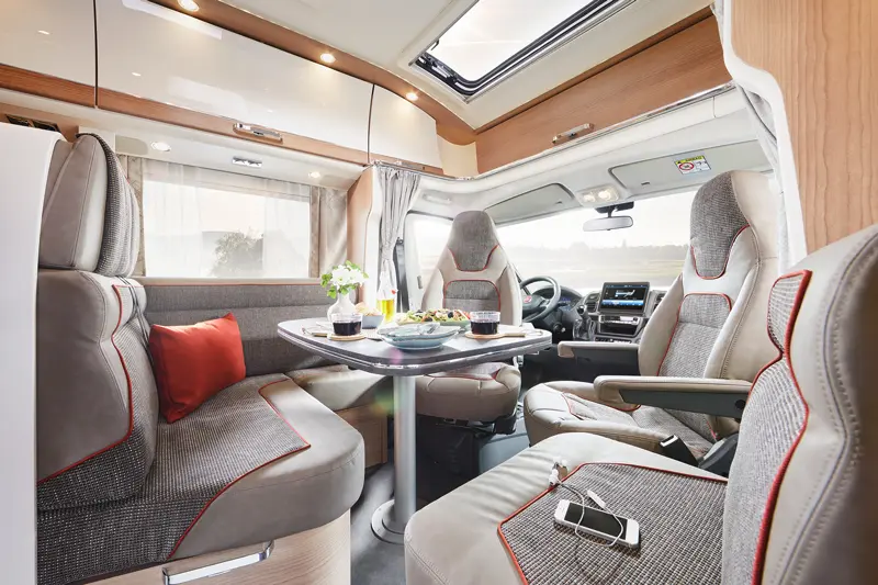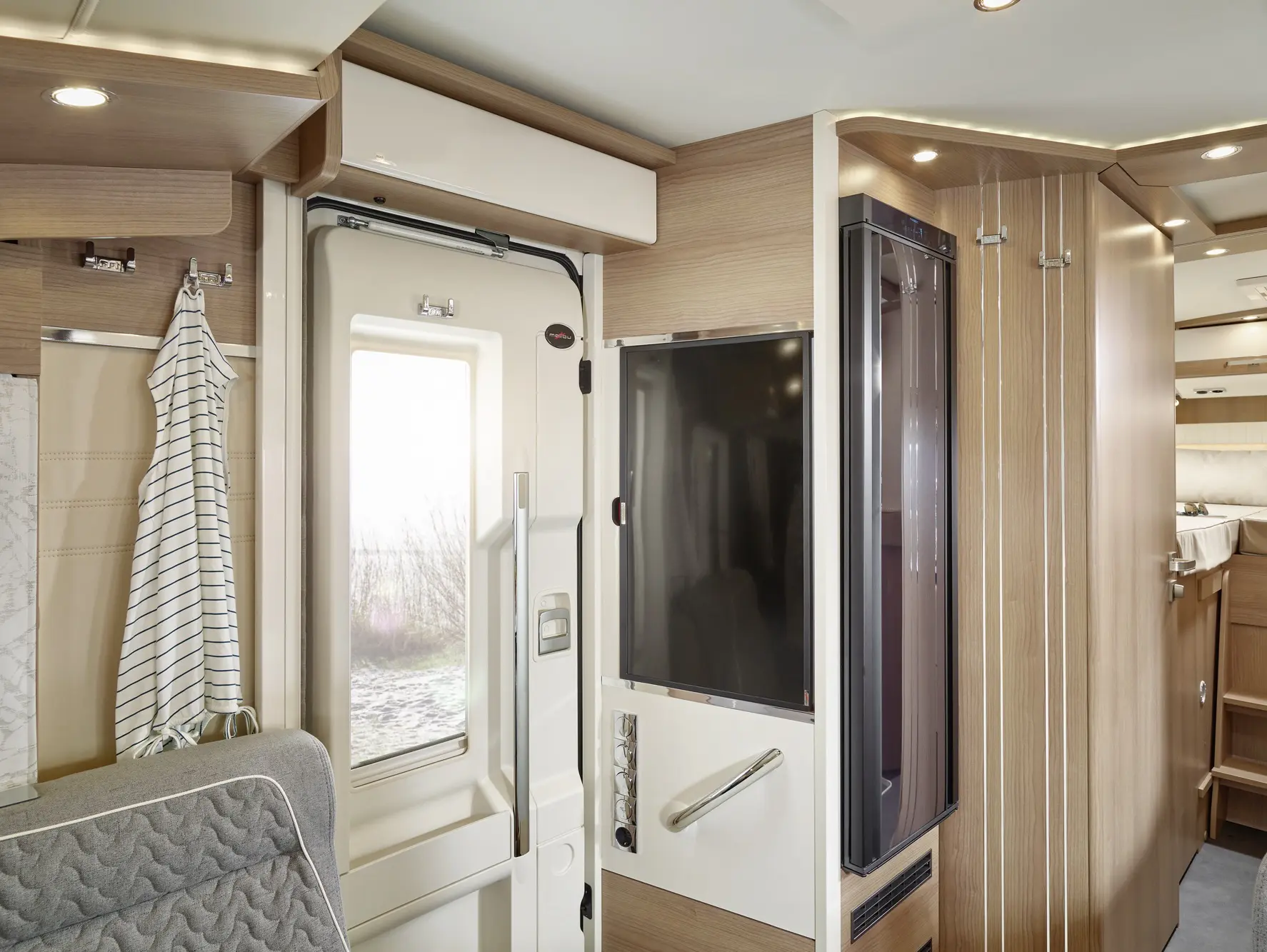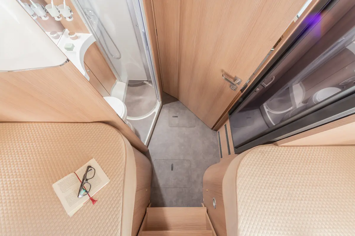 Wohlfühlen wie zuhause: Die L-Wohnsitzgruppe mit ausdrehbarem Schuhschrank und breiter auschwenkbarer Seitensitzbank, die Komfort-Winkelküche, das Komfort-Raumbad mit vollkommen separierbarem Umkleidezimmer und Längseinzelbetten mit großer Liegelänge machen es möglich.