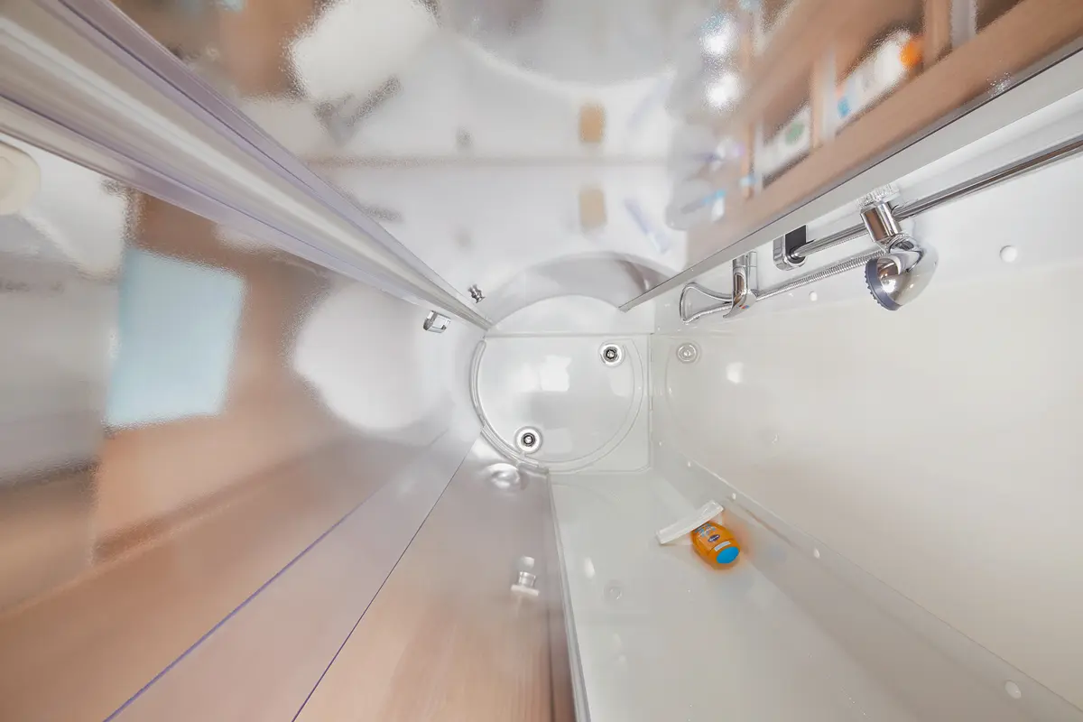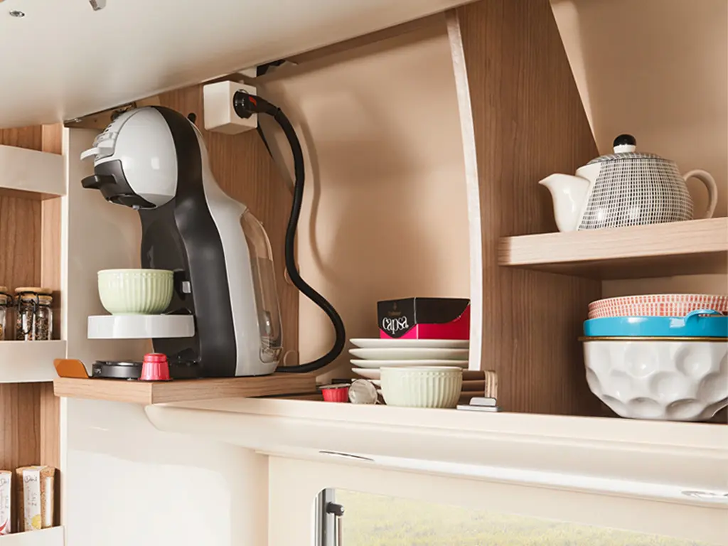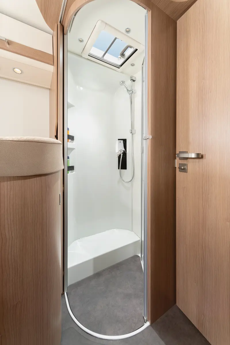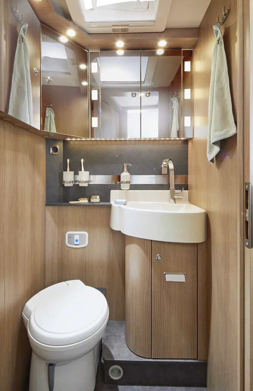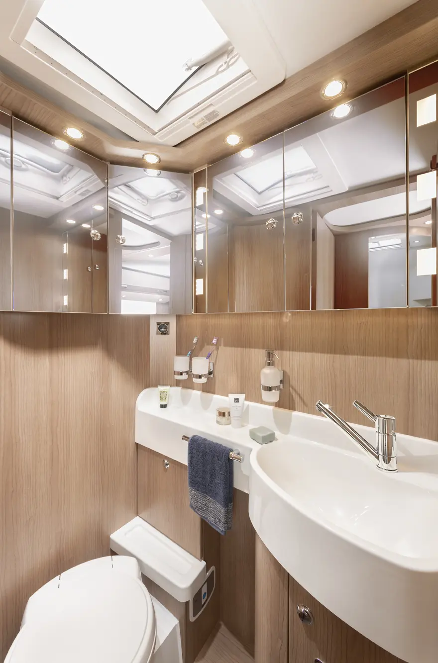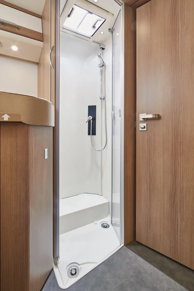 Wohlfühlen wie zuhause: Die L-Wohnsitzgruppe mit ausdrehbarem Schuhschrank und breiter auschwenkbarer Seitensitzbank, die Komfort-Winkelküche, das Komfort-Raumbad mit vollkommen separierbarem Umkleidezimmer und Längseinzelbetten mit großer Liegelänge machen es möglich.
