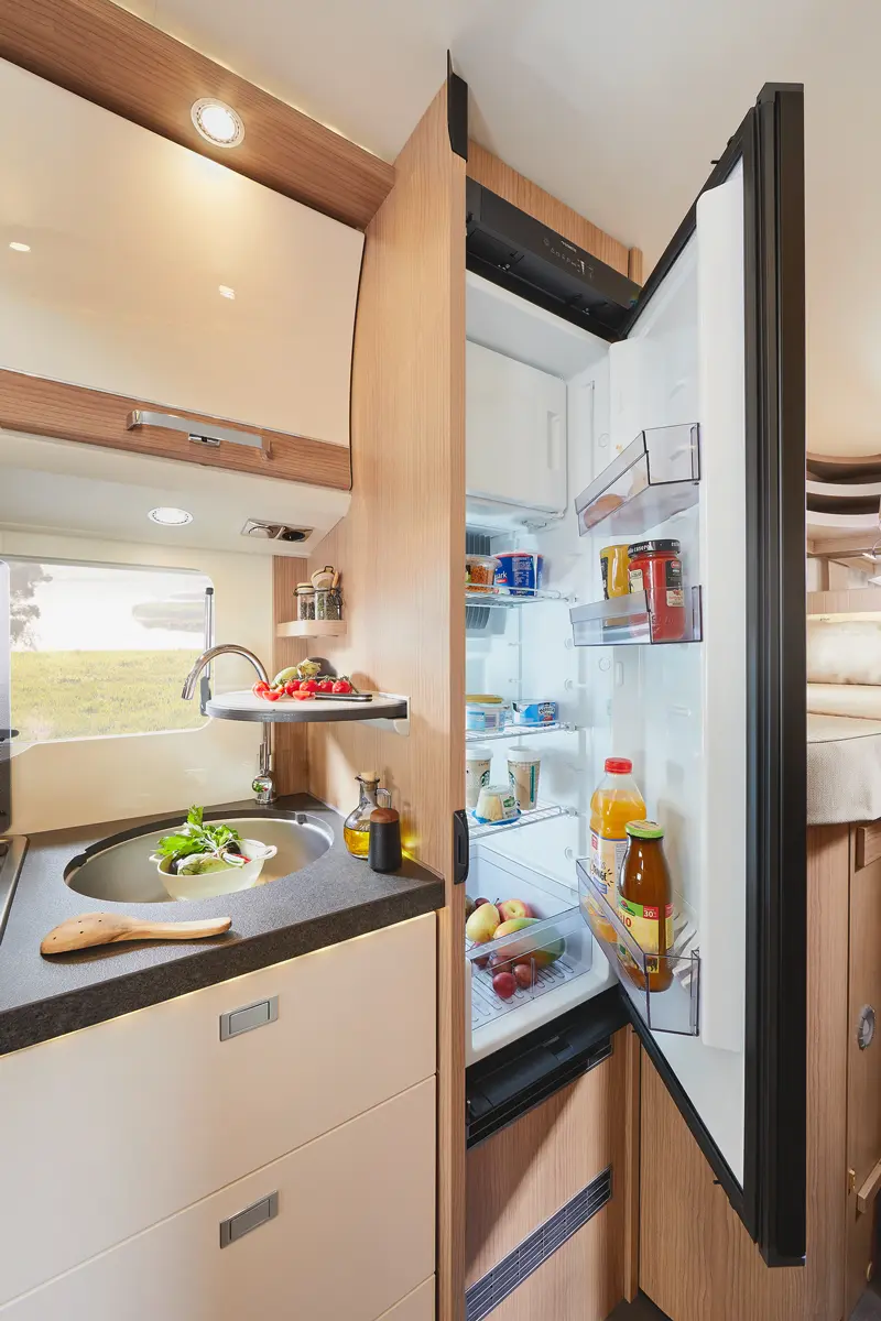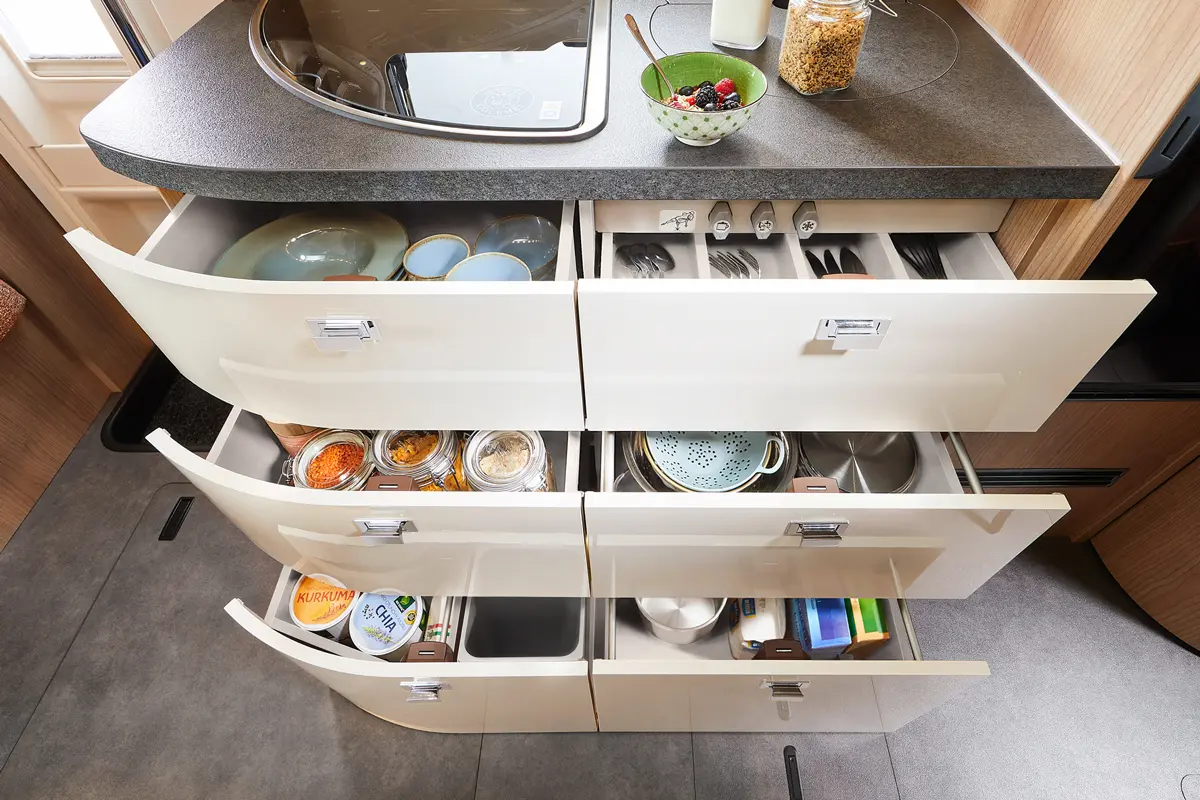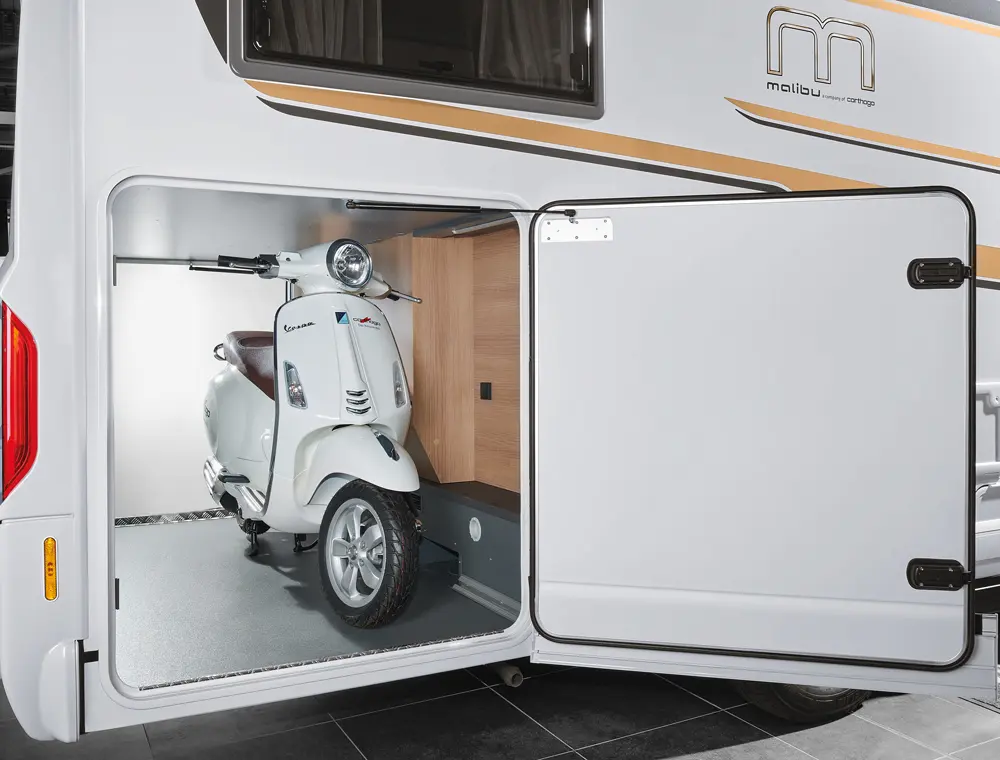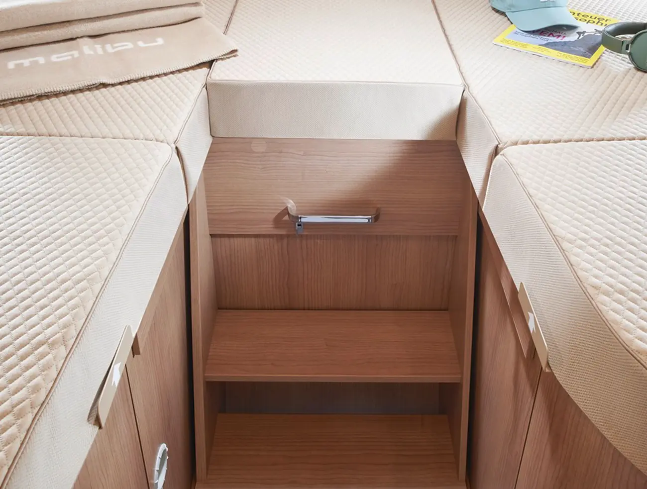 Im Urlaub kann man nie genug Stauraum haben. Daher bieten auch alle teilintegrierten Wohnmobile von Malibu dank des extragroßen Doppelboden-Kellers und vieler leicht zugänglicher Stauräume viel Platz, damit Ihr Urlaubsgepäck im Nu sicher und ordentlich verstaut ist. Selbst sperriges Gepäck wie etwa Campingmöbel oder Skier sind durch den zentralen Durchladestauraum schnell und leicht verstaut. Und dank der LED-Beleuchtung behalten Sie dort zu jeder Zeit den Überblick über Ihr Gepäck. Zahlreiche große Außenklappen garantieren ein einfaches und bequemes Beladen von außen, während die großen aufstellbaren Wohnraumbodenklappen im Wohn- und Küchenbereich des Wohnmobils den bequemen Zugang zu den extratief abgesenkten Stauräumen von innen sicherstellen. Nützlich bei kälteren Temperaturen: der durchgehend beheizbare Doppelboden-Keller dient auch als Klimaspeicher, sodass Ihr Ladegut stets vor Frost geschützt ist.