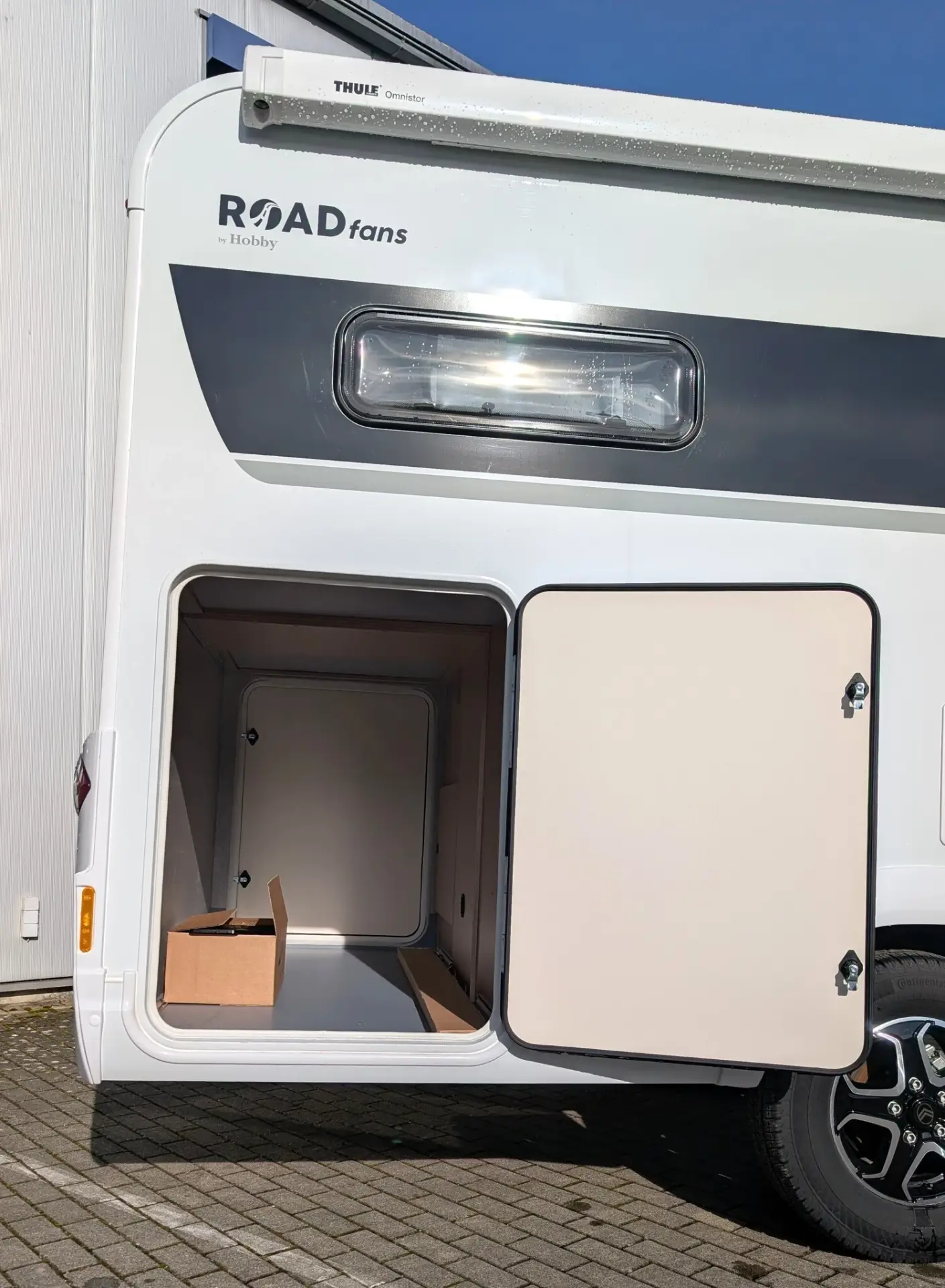 Garagentür auf Beifahrerseite, Garagentür auf Fahrerseite, Heckabsenkung mit XPS-Wärmedämmung, Heckgarage, isoliert und beheizt, mit robuster Bodenbeschichtung, Zurrschienen und -ösen in der Garage
